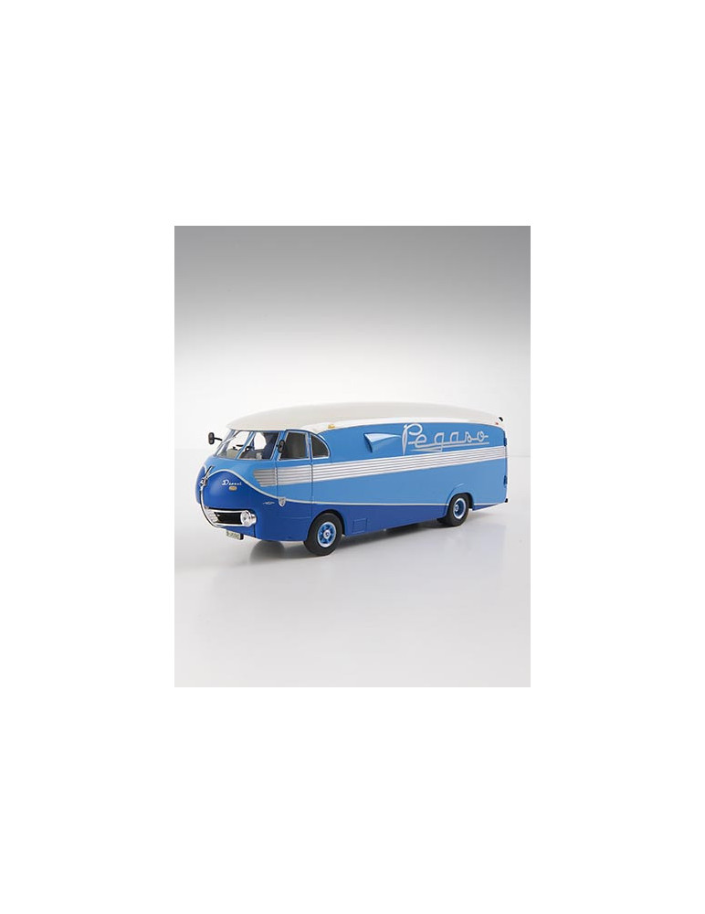 Aunque su nombre oficial era furgón Pegaso Diésel Z-902, este vehículo pasó a la historia con el apelativo de “Bacalao” debido a unas singulares entradas de aire laterales, con aspecto de aletas de pez, que destacaban en su carrocería. Estos elementos eran una parte más de una envoltura de gran originalidad que se caracterizaba también por su diseño fusiforme, un rasgo que mejoraba su aerodinámica y la conducción central, en una cabina con un parabrisas compuesto de tres segmentos. La mecánica era bastante tradicional considerando que el chasis era derivado de los modelos para autobús y el motor era la conocida unidad Diésel de 140 CV montado en la segunda generación del Pegaso Z-202. Destacaba la conducción central y la cabina muy alta y de suelo completamente plano. Dimensiones: 2.5cm ancho, 10cm largo, 3.5 alto, escala 1:43. La única unidad construida en die cast del Bacalao fue utilizada como vehículo de asistencia para el transporte de los deportivos Pegaso Z-102.
